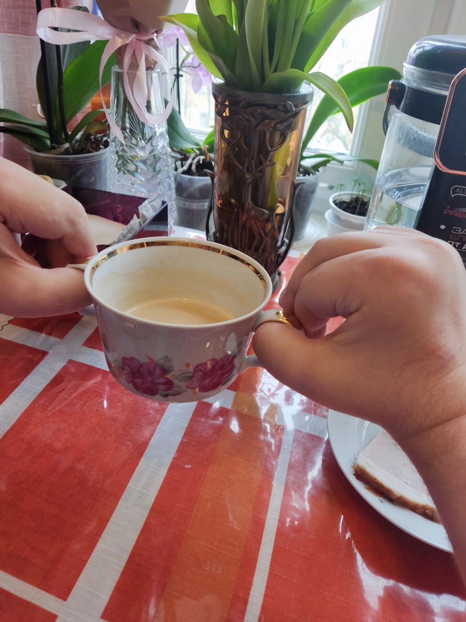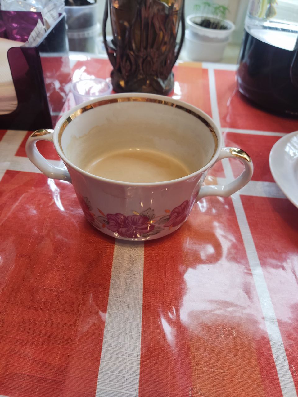 Я открыл для себя "бульонницу", из этой чашки с двумя ручками удобно пить/есть не только супы и бульоны, но и пить чай, кофе и прочие напитки. Удобно браться за нее двумя руками, не выламывая большой палец руки, как при захвате обычной кружки. Теперь пить и есть стало гораздо легче. И при таком захвате меньше вероятность опрокинуть на себя, как кружку. Увереннее и легче поднимать такую емкость с жидкостями.